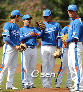 2009.02.18 09: 08류현진 봉중근,'얼굴 타면 안돼요'