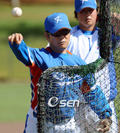 2009.02.22 11: 07김인식,'진만이 어깨는 많이 좋아졌나?'