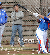 2009.02.26 08: 29추신수의 토스 배팅을 지켜보는 김인식 감독