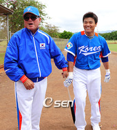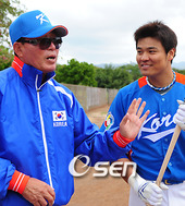 2009.02.26 08: 52얘기를 나누는 김인식 감독과 추신수