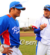 2009.02.26 09: 01얘기를 나누는 봉중근과 추신수