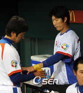 2009.03.02 11: 23'테이핑으로 손목을 보호하는 고영민'