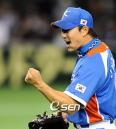 2009.03.09 20: 19완벽한 투구를 펼친 봉중근의 환호