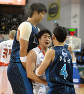 2009.03.10 19: 29하승진,'김민수와 치열한 몸싸움'
