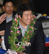 2009.03.26 01: 20윤석민에게 화환을 걸어주는 이장석 사장
