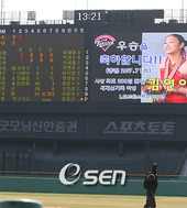 2009.03.29 17: 34야구장에서도 김연아의 세계신기록 우승 축하!