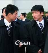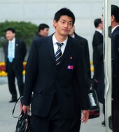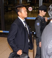 경호 받으며 입국하는 정대세
