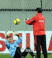 2009.03.31 20: 19몸을 푸는 북한 골키퍼 김명길