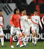 씁쓸하게 퇴장하는 북한 선수들
