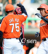 2009.04.04 16: 55송광민,'홈런 타자끼리 하이파이브'