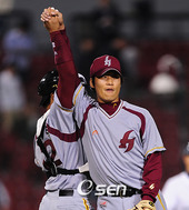 2009.04.14 21: 49승리의 기쁨을 나누는 히어로즈 선수들