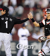 2009.05.06 22: 28우규민-김정민,'LG는 강하다!'