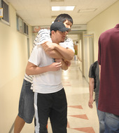 2009.05.13 13: 10하승진,'나 다쳤으니 좀 업어줘'