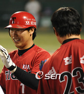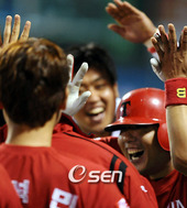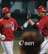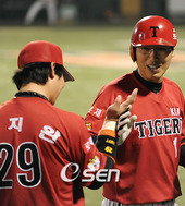 2009.05.14 21: 43최희섭,'지완이 홈런포 축하'