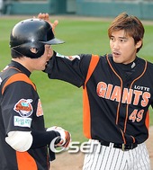 2009.06.05 18: 53홍성흔,'주찬, 멀미약 붙였네!'