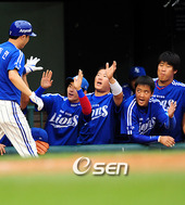 2009.06.19 19: 18박진만,'덕아웃 환영을 받으며'