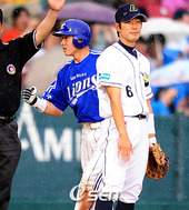 2009.06.28 17: 53타구에 맞은 부위를 만지는 김선우