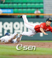 2009.07.07 19: 24정근우,'송구가 너무 길었어'
