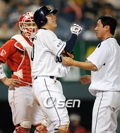 2009.07.08 20: 20김현수,'공 맞았어!'