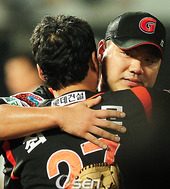 2009.07.10 21: 56송승준,'3연속 완봉승의 기쁨을 조성환과 나누며'