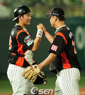 2009.07.10 21: 59홍성흔-송승준,'우리가 승리의 주역!'