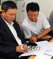 2009.07.10 11: 32훈련기획안을 검토하는 허정무 감독과 정해성 코치