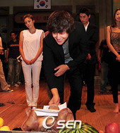 2009.07.15 13: 51돼지머리에 돈을 올리는 김범