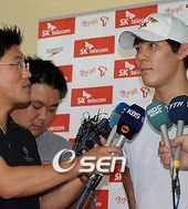 2009.07.17 12: 46박태환,'뭐라고 말할까?'