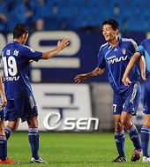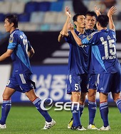 2009.07.18 22: 21선제골을 축하 받는 하태균