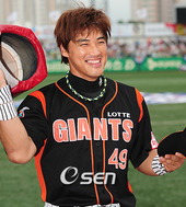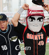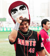 2009.07.25 17: 28홍성흔,'턱돌이 가면을 쓰고 댄스타임!'