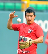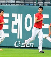2009.07.31 17: 48미소 지으며 훈련하는 김광현