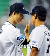 2009.08.01 20: 14김현수-임재철,'수고했어!'
