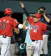 2009.08.04 21: 14서재응,'희섭이 연타석 홈런포 축하해'