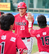 2009.08.05 18: 57나지완,'투런포의 기쁨을 나누며'
