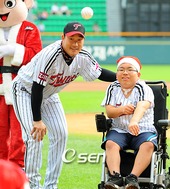 2009.08.08 17: 44봉중근,'태경아, 잘 던졌어!'