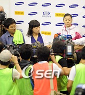 2009.08.12 16: 36취재진에 둘러싸인 김연아