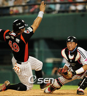 2009.08.14 22: 45장성우,'박용택을 몸으로 막았지만!'