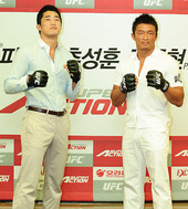 2009.08.14 11: 15김동현-추성훈,'함께 파이터의 포즈를 취하며'