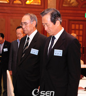 2009.08.19 11: 53故 김대중 전 대통령을 추모하는 묵념을 올리는 정몽준 이홍구