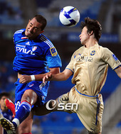 공중볼을 다투는 티아고와 장원석