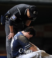 2009.08.27 21: 43걱정하는 박기택 심판,'영민아, 괜찮아?'