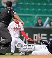 2009.08.27 19: 18임재철,'내가 빨랐지?'