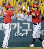 2009.08.30 20: 18서재응-윤석민,축하 받는 장성호