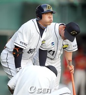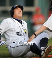2009.08.30 18: 24김현수,'무릎 맞았어'