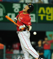 2009.09.03 22: 08정근우,'등에 직격! 너무 아파!'
