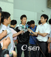 2009.09.08 13: 21출국 인터뷰 중인 박지성