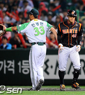 2010.05.30 20: 33'6게임 연속 홈런' 놓친 홍성흔,'괜히 안경현 툭!'