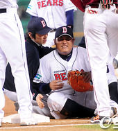 2010.06.01 21: 24충돌한 최준석,'어이쿠! 위험했어'