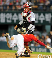송은범-최경철, '깔끔하게 막았어'