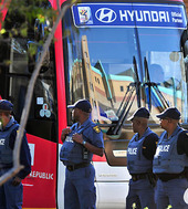 2010.06.07 23: 26삼엄한 경비를 받으며 훈련장에 도착한 대표팀 차량